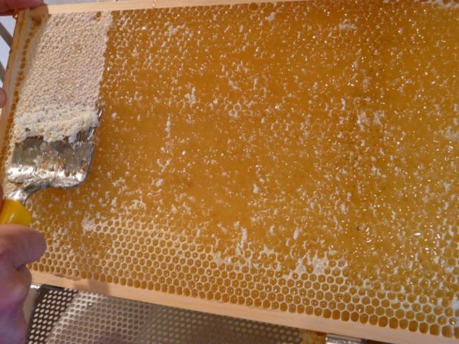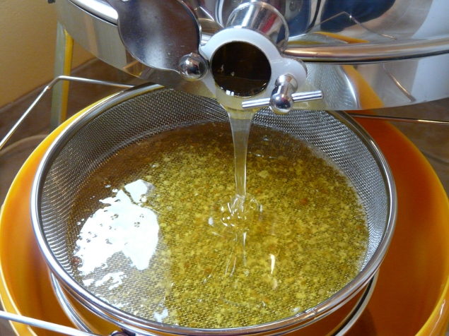Der Honig wird aus den Waben kalt geschleudert und gesiebt um